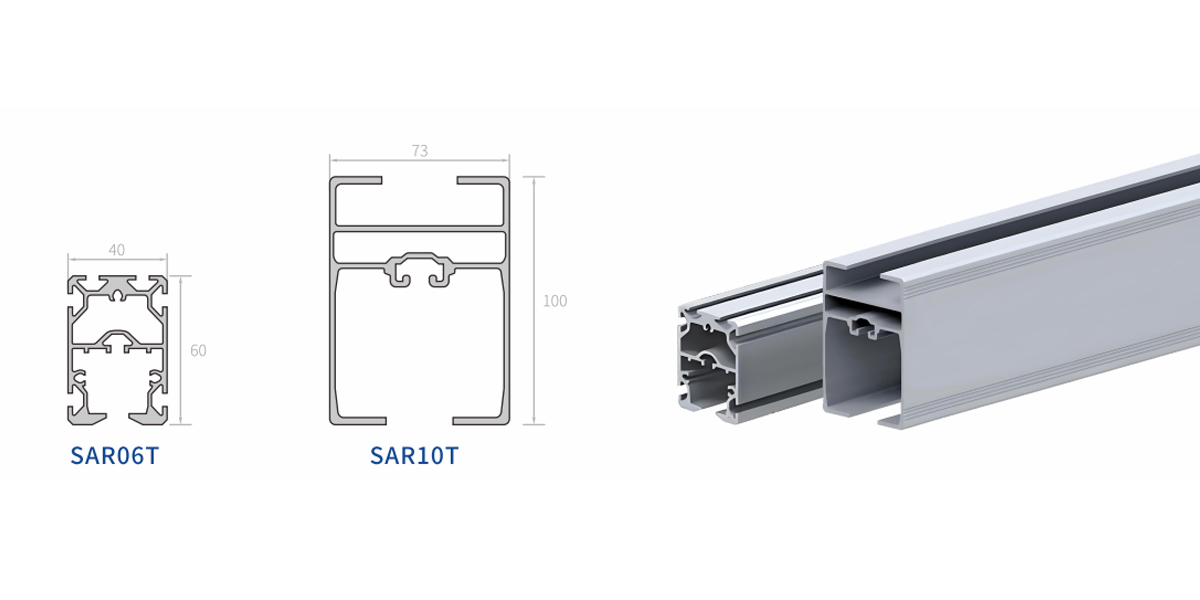 Der er fem forskellige specifikationer for skinner af aluminiumslegering. Præcisionsforarbejdede aluminiumslegeringsprofiler og strukturelle komponenter er nemme at installere, modulære og opretholder en mere jævn drift. Det forseglede design af skinner i aluminiumslegering er let, men har høj bøjningsstyrke og bedre slidstyrke. På grund af overfladepositiv galvaniseringsbehandling og dens egne anti-korrosionsegenskaber bruges denne struktur i rene værksteder og bilproduktionslinjer, fødevarer og punktoperationer. Den lettere egenvægt er en faktor, der er værd at overveje.