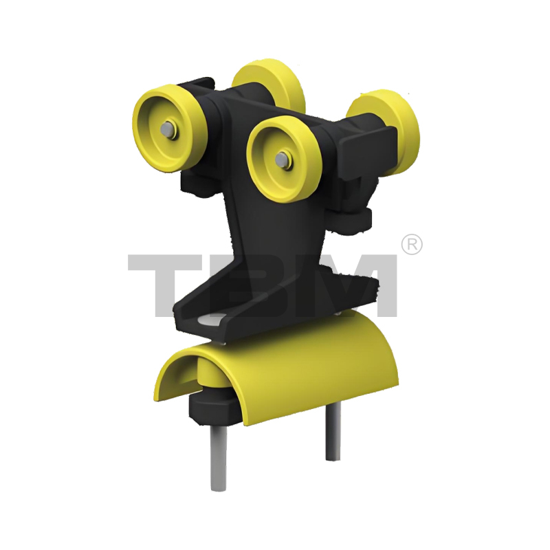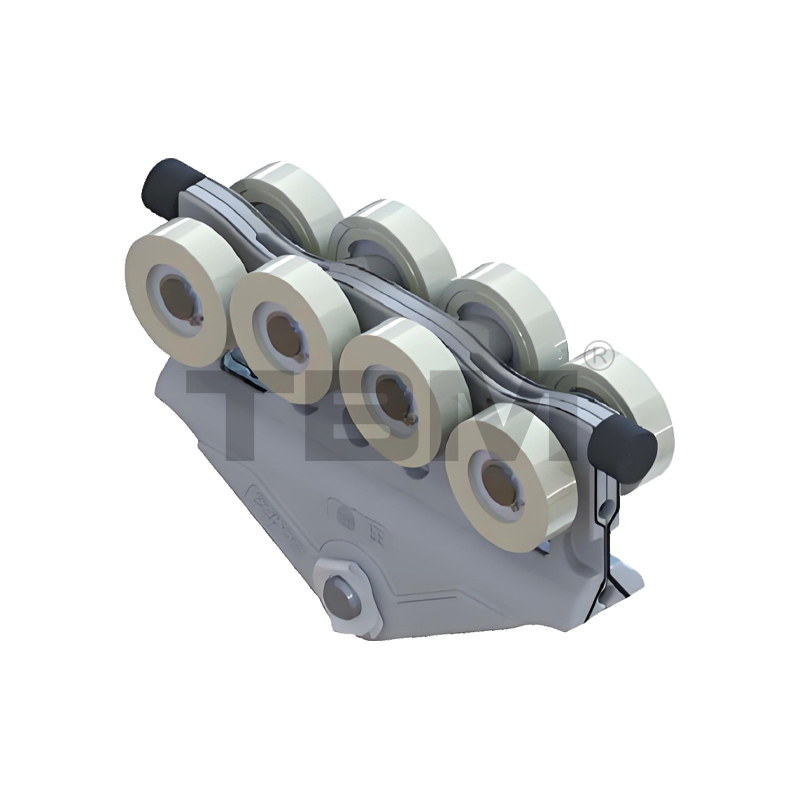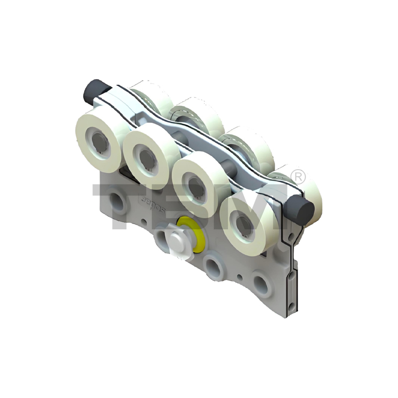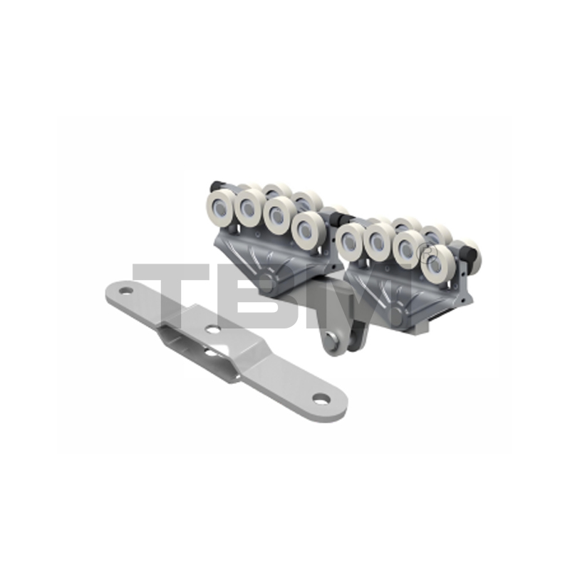 ■ Vognen er trykstøbt/smedet af højstyrke, slidstærk nylon for jævn glidning og nem betjening. Two rows of upper and lower rollers provide pry-resistant and anti-bias protection.