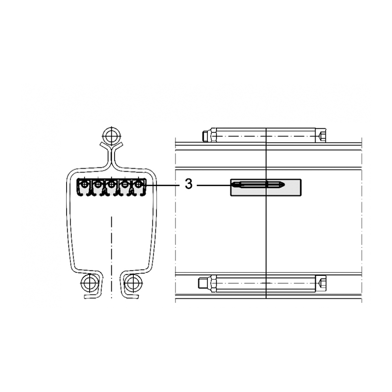 ■Båndets endedæksel (inklusive SCRli endekappeholderen) forsegler enden af skinnen for at forhindre bevægelige komponenter i at falde. Den har antikollisionsgummiblokke for at afbøde stød.