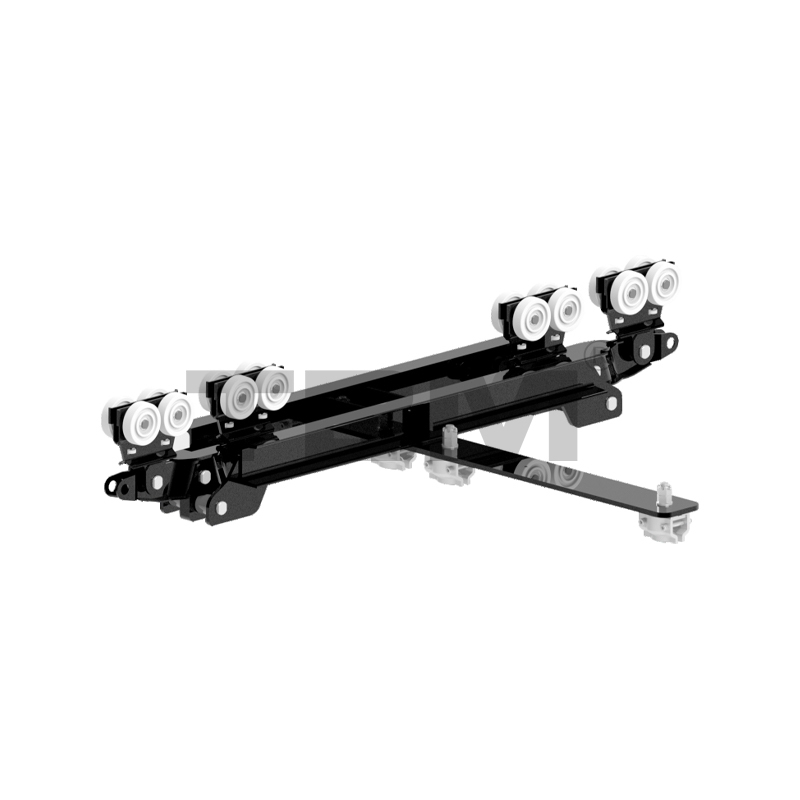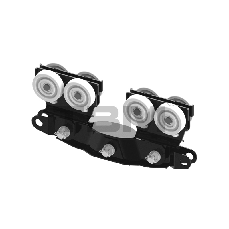 [Trolleyhjulene er lavet af højstyrke nylon med en bestemt hjulvinkel, der passer perfekt til sporets slidbane. Vognen centreres automatisk under drift. Vognen er udstyret med en styrehjulstruktur for at undgå friktion med sporåbninger og øge køremodstanden. To vandret placerede vinger sikrer, at vognen ikke falder af sporet i tilfælde af en funktionsfejl, hvilket fuldt ud sikrer sikkerheden.]