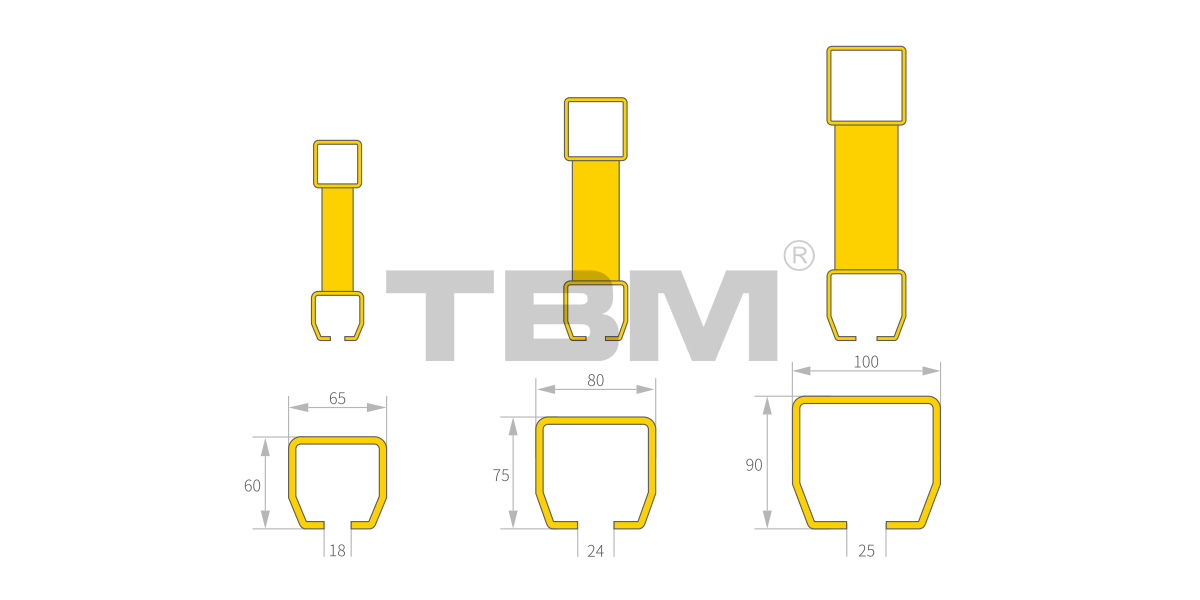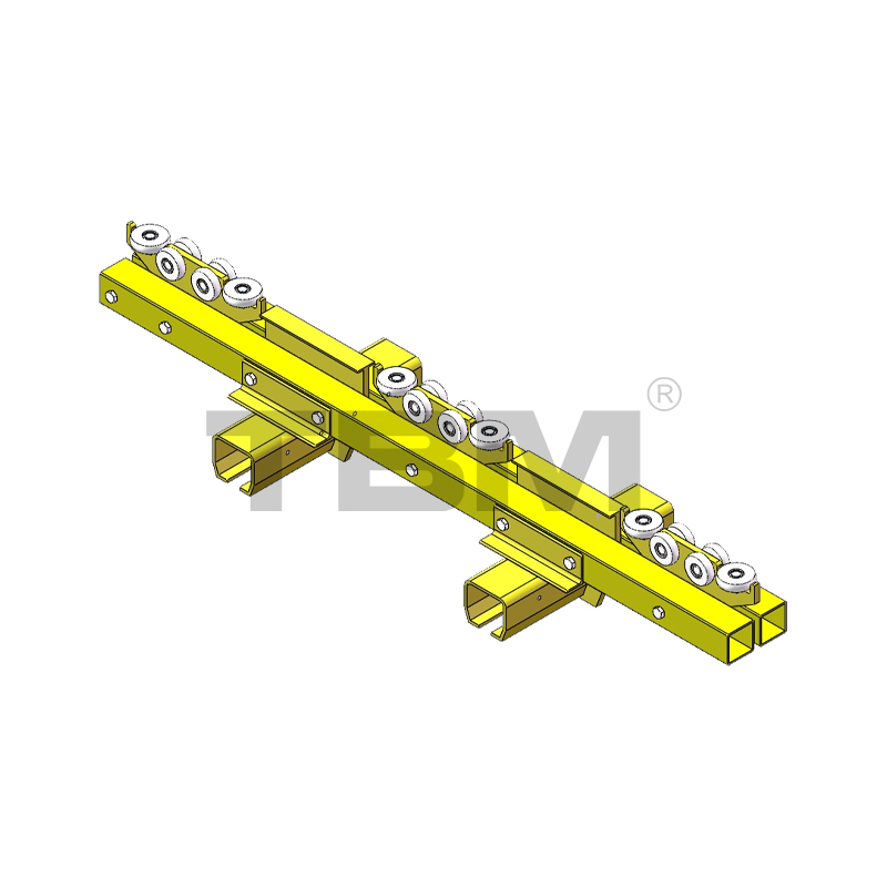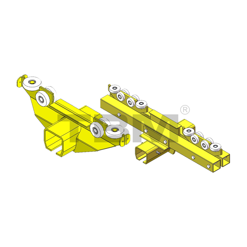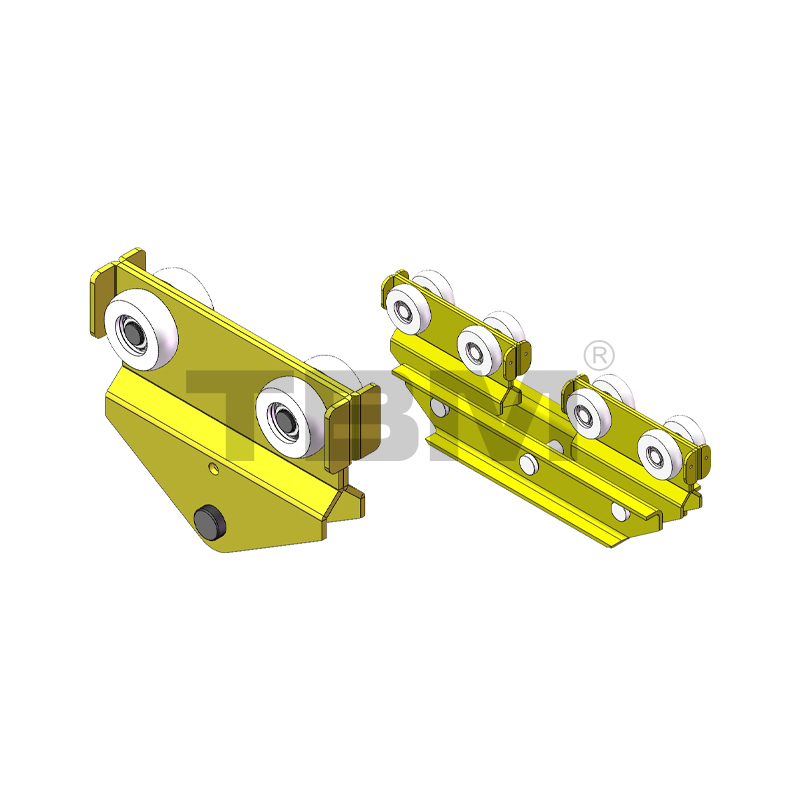 █Fjernbjælkevognen bruges til at hænge løftemekanismer osv. Dens hjul er lavet af højstyrke nylon og har en tilsvarende hældning, så de kan tilpasse sig skinnens slidbane, hvilket sikrer jævn drift og automatisk centrering. Bøjede vinger i begge ender forhindrer vognen i at falde af sporet ved et uheld, hvilket sikrer fuld sikkerhed.