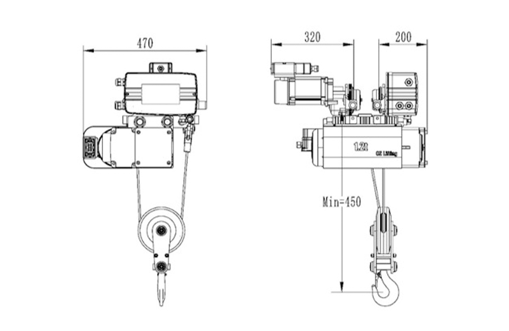 | Type | FEM | Indlæs (kg) | HoL (m) | Hejsehastighed (m/min) | Hejsemotor (kW) | Rejsehastighed (m/min) |